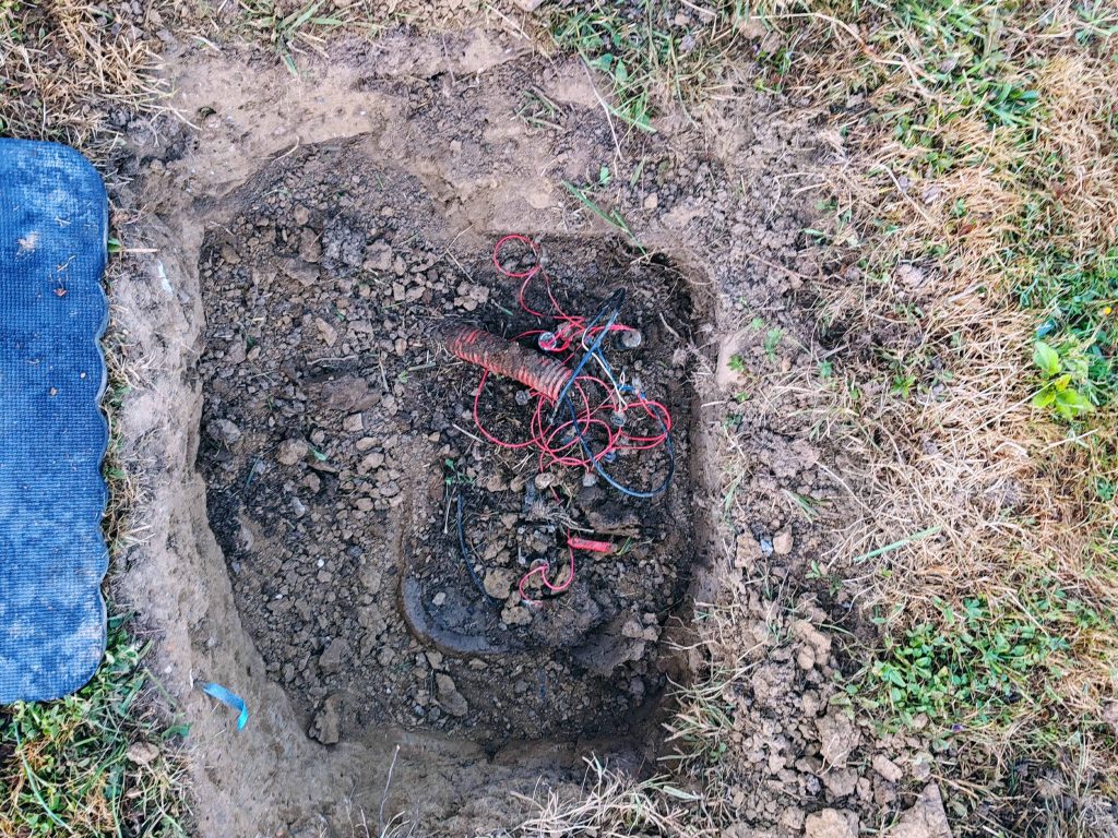 - Creusement sur environ 1 mètre de profondeur, sur un volume de 1,50 m × 1,50 m × 0,80 m ;