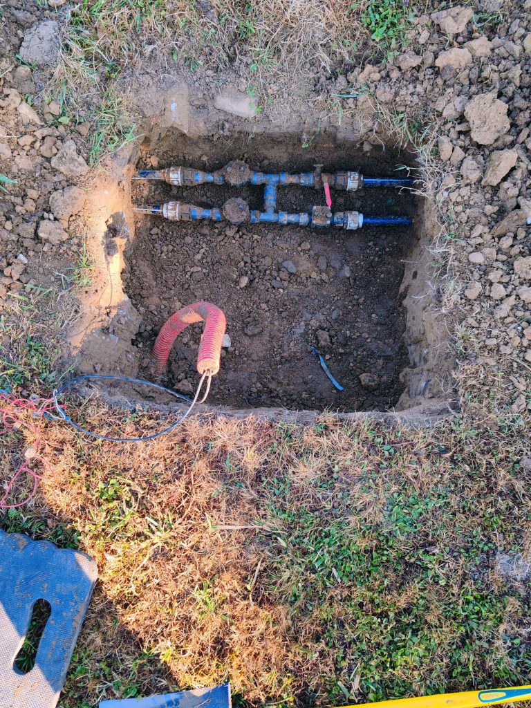 Lors du dégagement, nous avons découvert une alimentation équipée d’une vanne en laiton totalement oxydée — logique, puisque le laiton directement en contact avec la terre, c’est rarement une bonne idée.